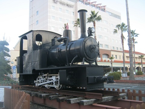 詩碑自体は四角形のお豆腐のような形状であまり目立たないので、気付かず通り過ぎる人も多いようですが、鉄道唱歌誕生100周年を記念して設置されたという、初期の宇和島鉄道を走行していたSLのレプリカが駅前に威風堂々と展示されていて、これがとても恰好良いです。ただ、詩碑とは微妙に離れているので、双方を一つのアングルで撮るのが難しいのは残念に感じました。
