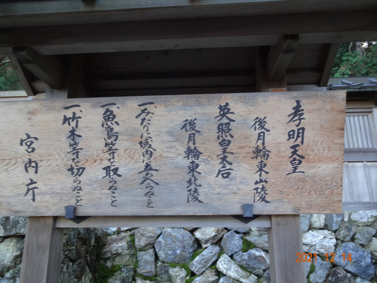 泉湧寺の入口を通り過ぎて、砂利が敷き詰められた道を、どんどん登って行くと、右側にまず、「英照皇太后 後月輪 東北陵」がありました。