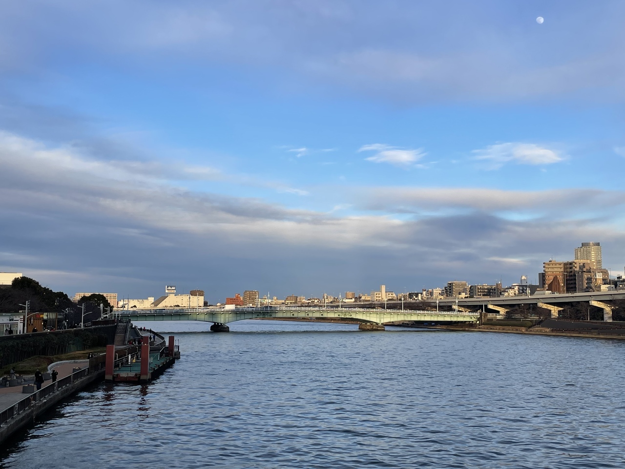 隅田川にかかる橋のひとつで東武鉄道の隅田川橋梁のすぐ上流側にあり、隅田リバーウオークの浅草側から眺めました。大正12年の関東大震災の復興事業のひとつとしてつくられたそうです。橋の両側に隅田公園が広がり、桜の名所でもあります、