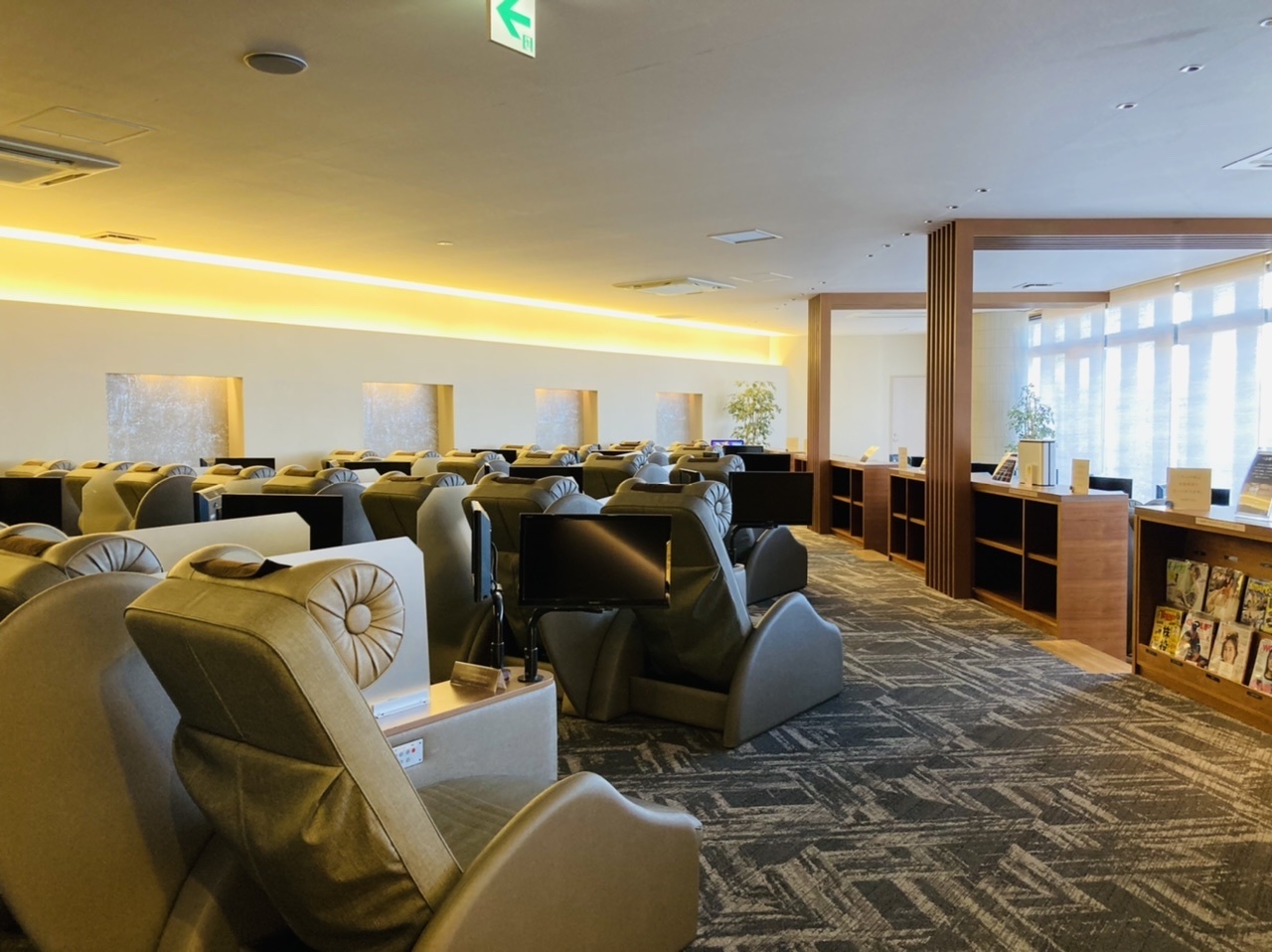 平日の午前中に行くと岩盤浴はかなり空いていたが、午後になり人が多くなりました。休憩スペースも6-7割は埋まってそうな感じで、平日にも関わらず人気がうかがえる。