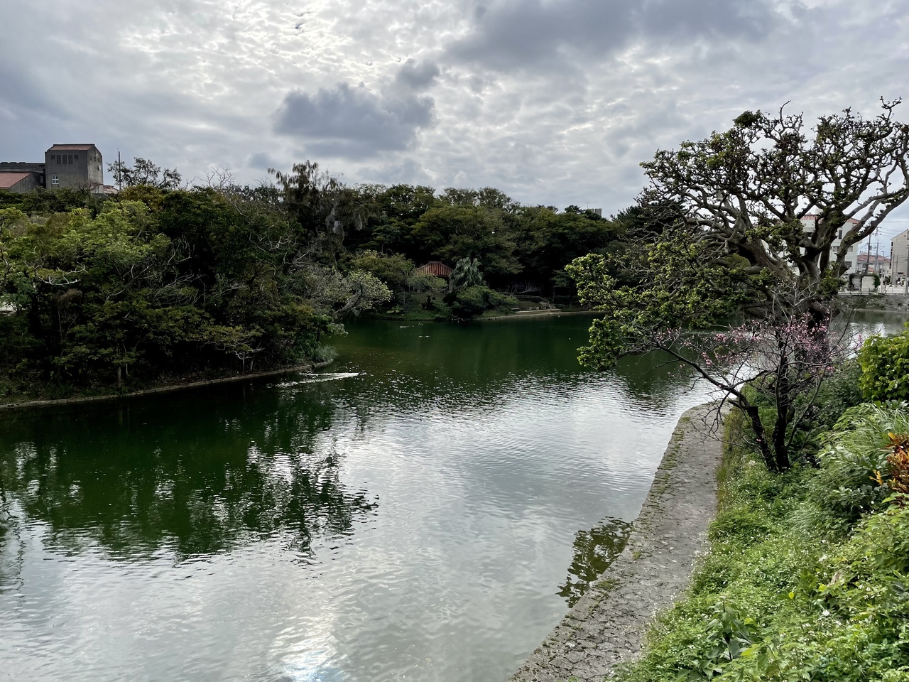 首里城に向かって歩いていると何気に対岸に鳥の集いを発見