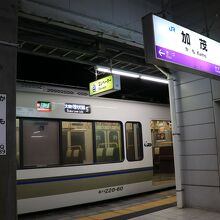車両は2人掛けで進行方向を向いて座るものなので昼間時間帯は良いのですが、ラッシュ時など混雑時間帯は窓側に座ると降車時に通路側の人を超えていかないといけないのが少々ネック。区間によっては快速しか来ない時間帯がある駅もありますが、そうした区間は快速が各駅に停まるので普通列車の役割を果たしているようです。