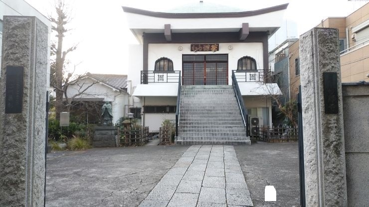 忍小通り沿いにあり、周辺は住宅街。境内は近代的でよく整備されている印象。本堂の建物は現代風で、高さもあり堂々とした印象を受けた。