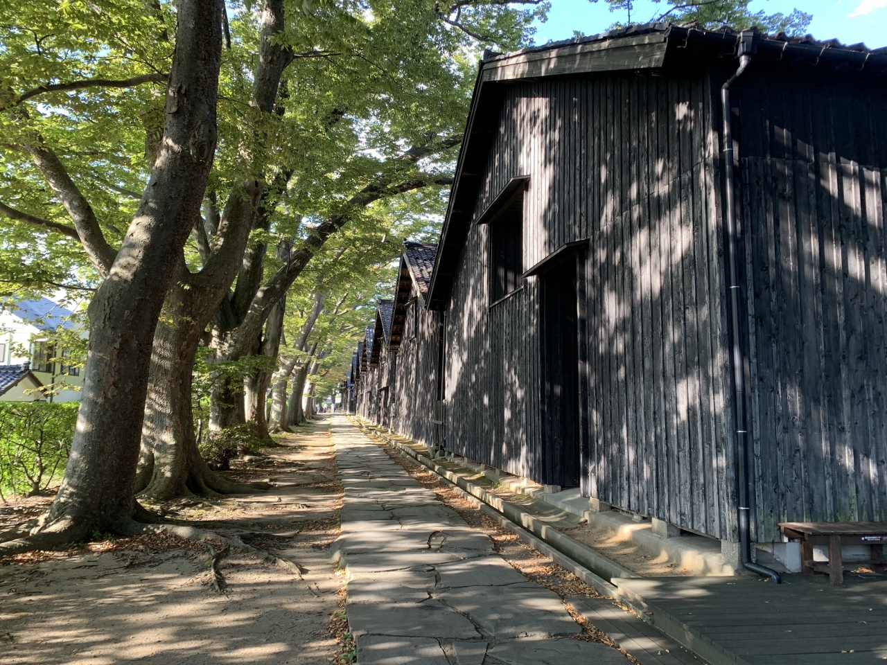 12棟の倉庫がケヤキ並木と共に並ぶ景観は米どころ庄内のシンボルとしても有名です。