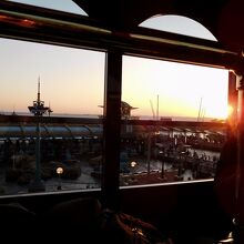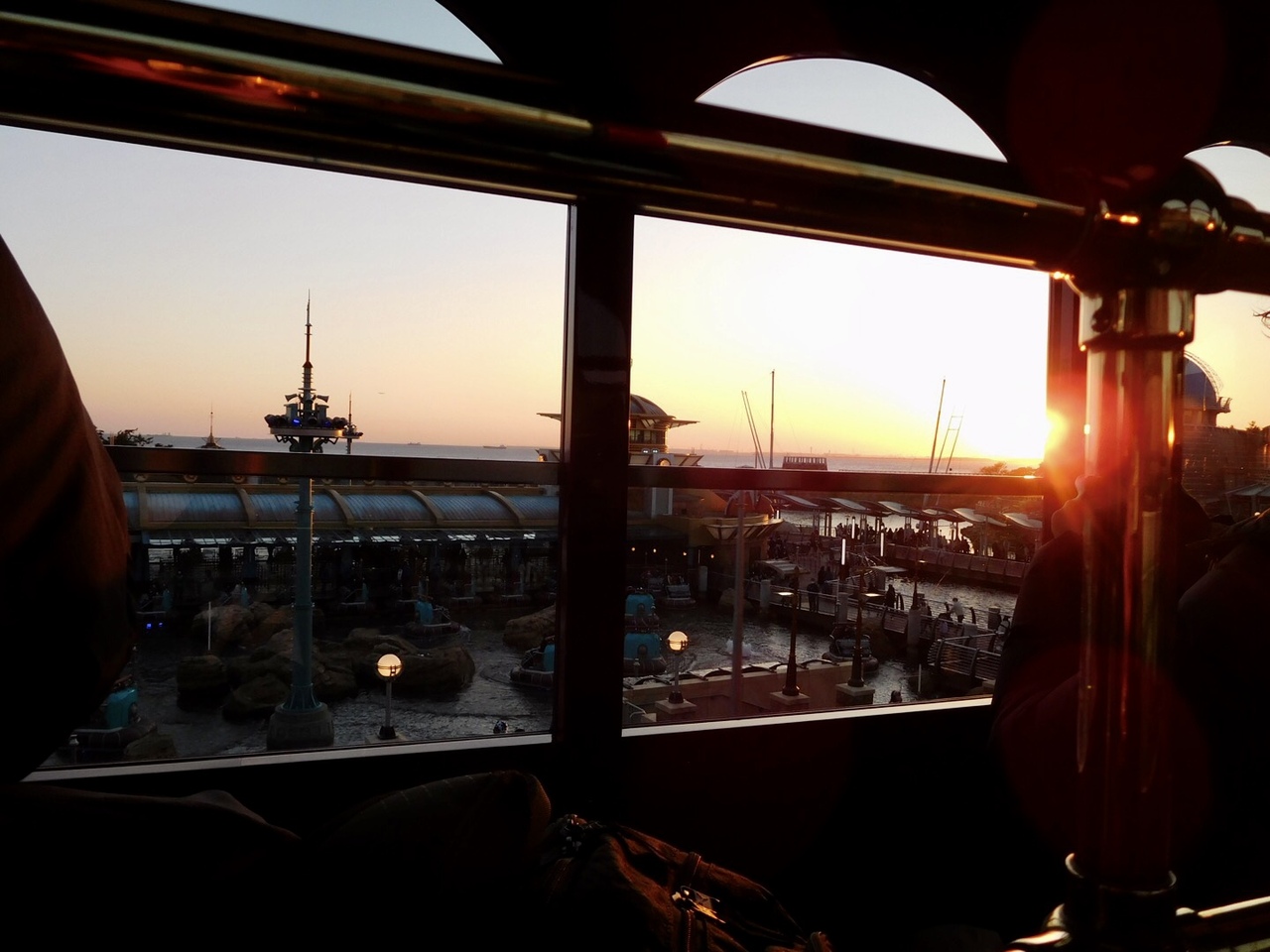 今回は夕方にエレクトリックレールウェイに乗ったのですが、ちょうど夕焼けがとてもキレイな時間帯で、いつも見慣れたアクアトピアの風景とは違った趣でした。