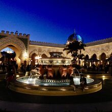 こちらのマジックランプシアターやお隣のカスバ・フードコート(レストラン)、キャラバンカルーセルなどがとても素敵にライトアップされています。