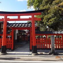道路沿いにあって、朱色の鳥居が印象的な寺院でした。
