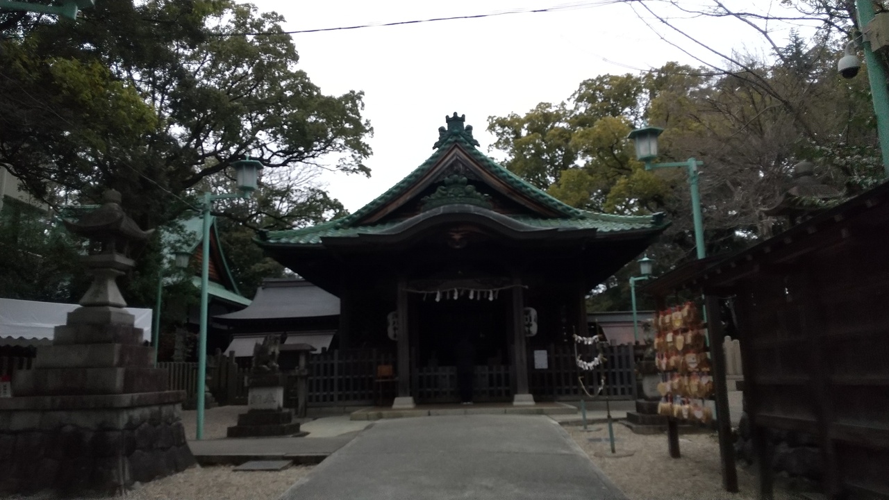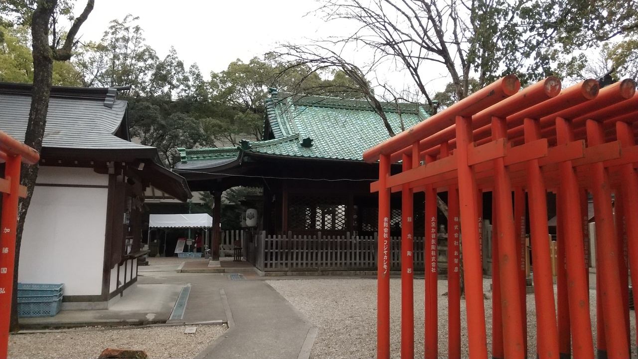 本殿の瓦は織部焼で緑色で美しく輝いていました。