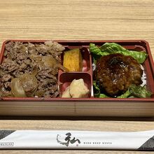 京のお肉処 弘さんは、弘の美味しいお肉たっぷりのお弁当やどんぶり、大人気のコロッケ、ミンチカツなどが並びます。