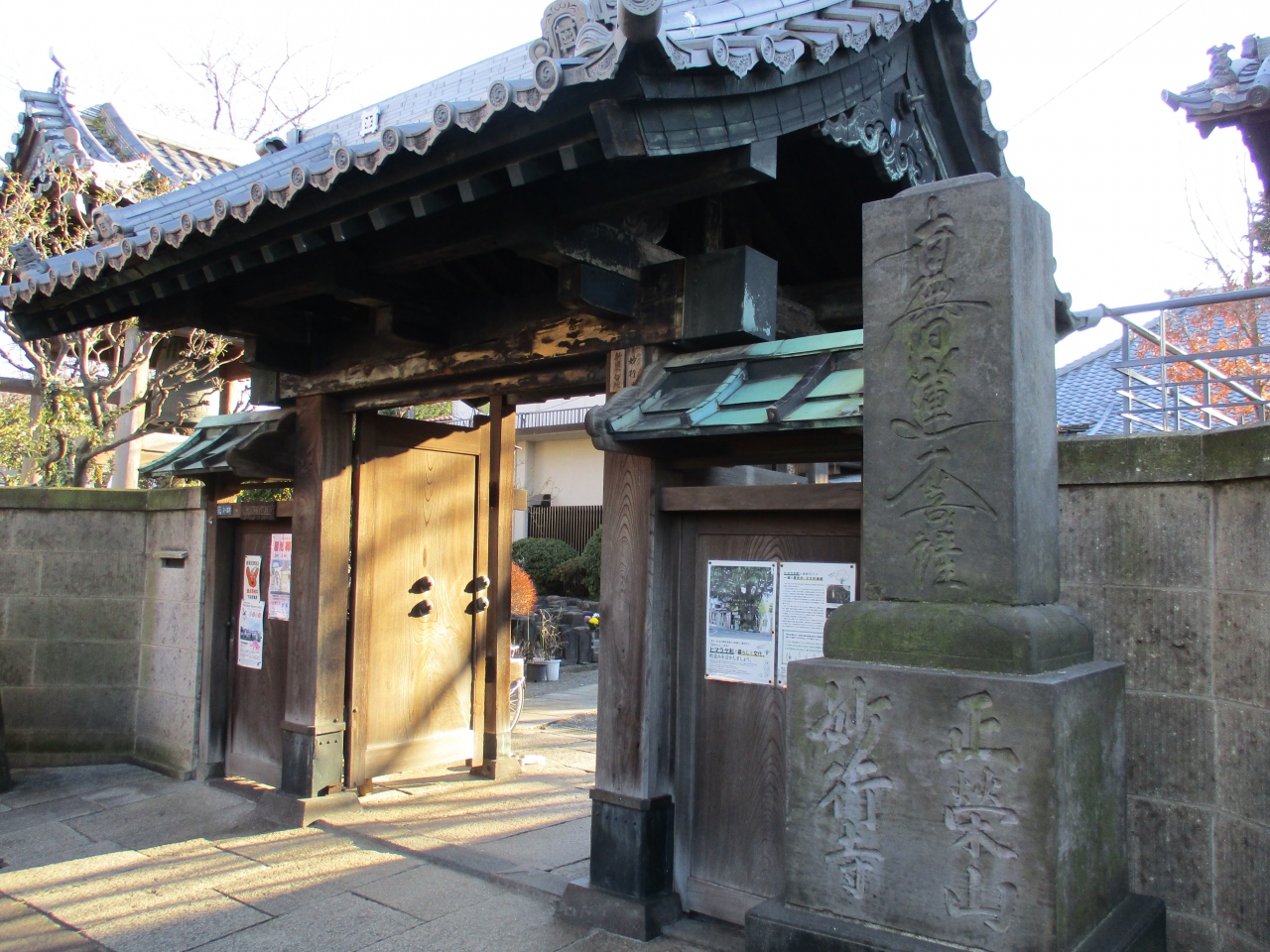 谷中の言問通りから住宅街を散策していた時に立ち寄ったお寺です。しっかりとした扉の付いた木造の寺門です。中に入ると、境内は手入れが行き届いてきれいです。鐘楼もあって風情のあるお寺でした。ちょうど山門を出たところには、有名なヒマラヤ杉を見ることが出来ます。