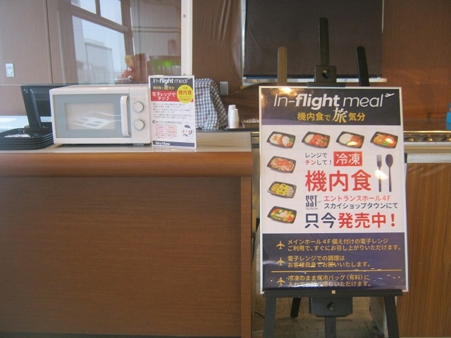 今回は、久しぶりのスカイビュー訪問ということもあり、そういや、かつてスカイビューにあった「レジェンドオブコンコルド」というレストランで頂いた機内食のことも思い出し、国際線になかなか搭乗できないご時世ということもあり、ここで販売されていた機内食を購入し、スカイビューの中に置かれている電子レンジで温めて頂いてみることにしました。