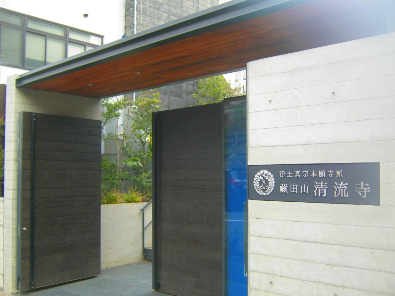 この清流寺は渋谷川の南側にある寺です。北側にはいくつか寺があるのです。南側はこの寺だけです。JR山手線恵比寿駅から東に5分程度の場所にあります。浄土真宗本願寺派です。創建は不明です。茨城県にあったのですが大正末期に今の場所に移築しています。新しいくなっていて門自体もモダンで住宅の入り口のようです。本堂もコンクリート作りになっています。