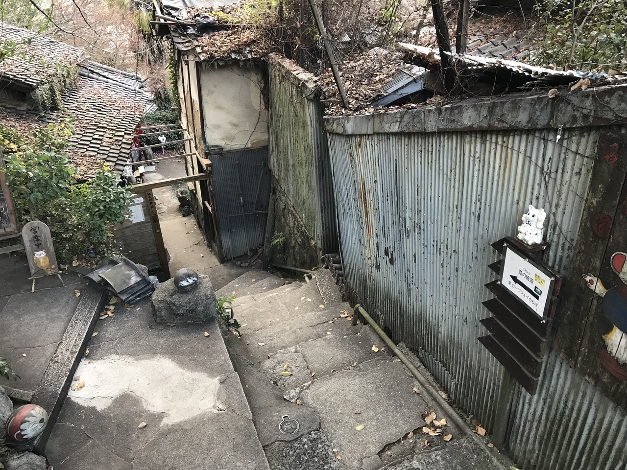 作家の園山春二の「福石猫」が1998年よりこの路地に置きはじめられ「猫の細道」と呼ばれるようになった。