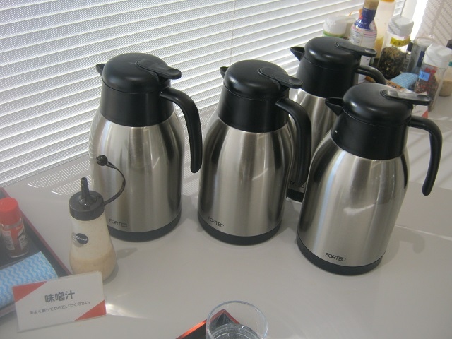 このお値段ですので、基本的にすべてがセルフサービスとなっていて、味噌汁もポットから注ぐ形式になっているのがユニークでした。