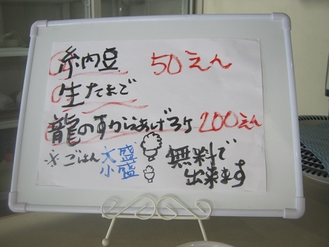定食には日替わりメニューもありますが、イチオシは店名を冠したメニュー「龍のすそのままザンギ定食」で、ボリューム満点のザンギ(鶏の唐揚げ)が5つも乗っていて、食べ応えがあります。お店自体がザンギに自信があるようでして、サイドメニューとしてザンギのみのオーダーも可能です。