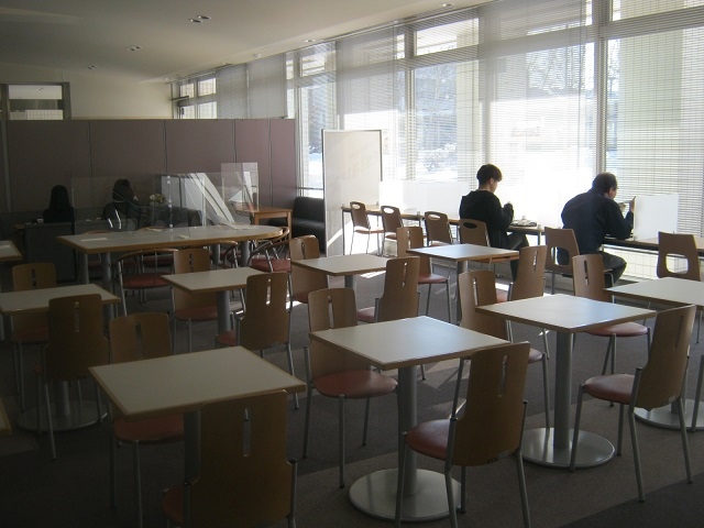 立地的にはJR南千歳駅を下車してすぐ、ちょうど、アウトレットモールレラに向かう通路沿いの向かって左側にあるアルカディアプラザビルの1Fで、基本的にはこのビルで働く人向けの社員食堂みたいな雰囲気ですが、一般の方も利用できます(親切にその旨の告知も見られます)。