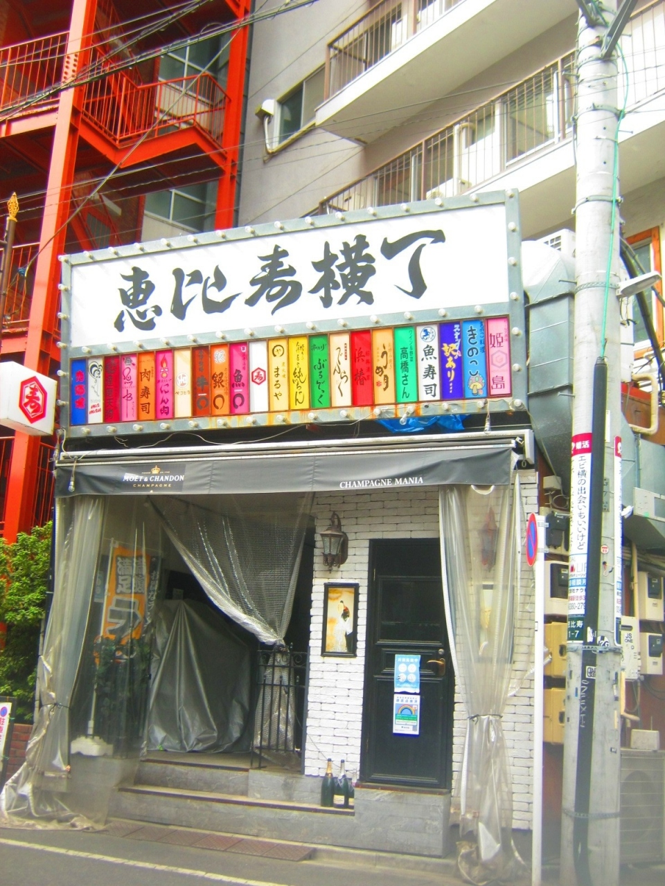 この恵比寿横丁はタコ公園で親しまれている恵比寿東公園の西側にあります。横丁ですのでビルの間の路地のイメージでしたがビルの中にあります。19の飲食店が並んでいます。ちょっと立ち寄ってみたくなるような横丁です。人のぬくもりを感じます。