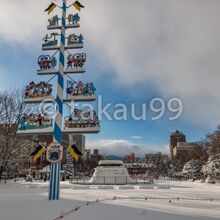 大通公園を散策しているときに「マイバウム」に立ち寄りました。とてもユニークな形をしたモニュメントです。雪も積もっていてどことなく北欧の雰囲気を感じました。背が高いので近づきすぎるとフレームに収まり切りません。
