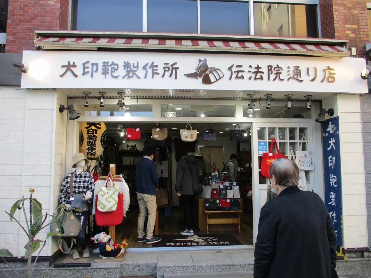 浅草を散策中お店を見かけました。私が見たのは雷通り店ではなく伝法院通りのお店です。入り口の看板犬?の置物がかわいいです。犬印鞄製作所は昭和28年創業の老舗の帆布カバンのお店です。丈夫で長持ちする、細部までこだわった製品が作られています。カバンの種類が豊富でショルダーバッグ、リュック、トートバッグなどいろいろあります。財布など小物もあります。