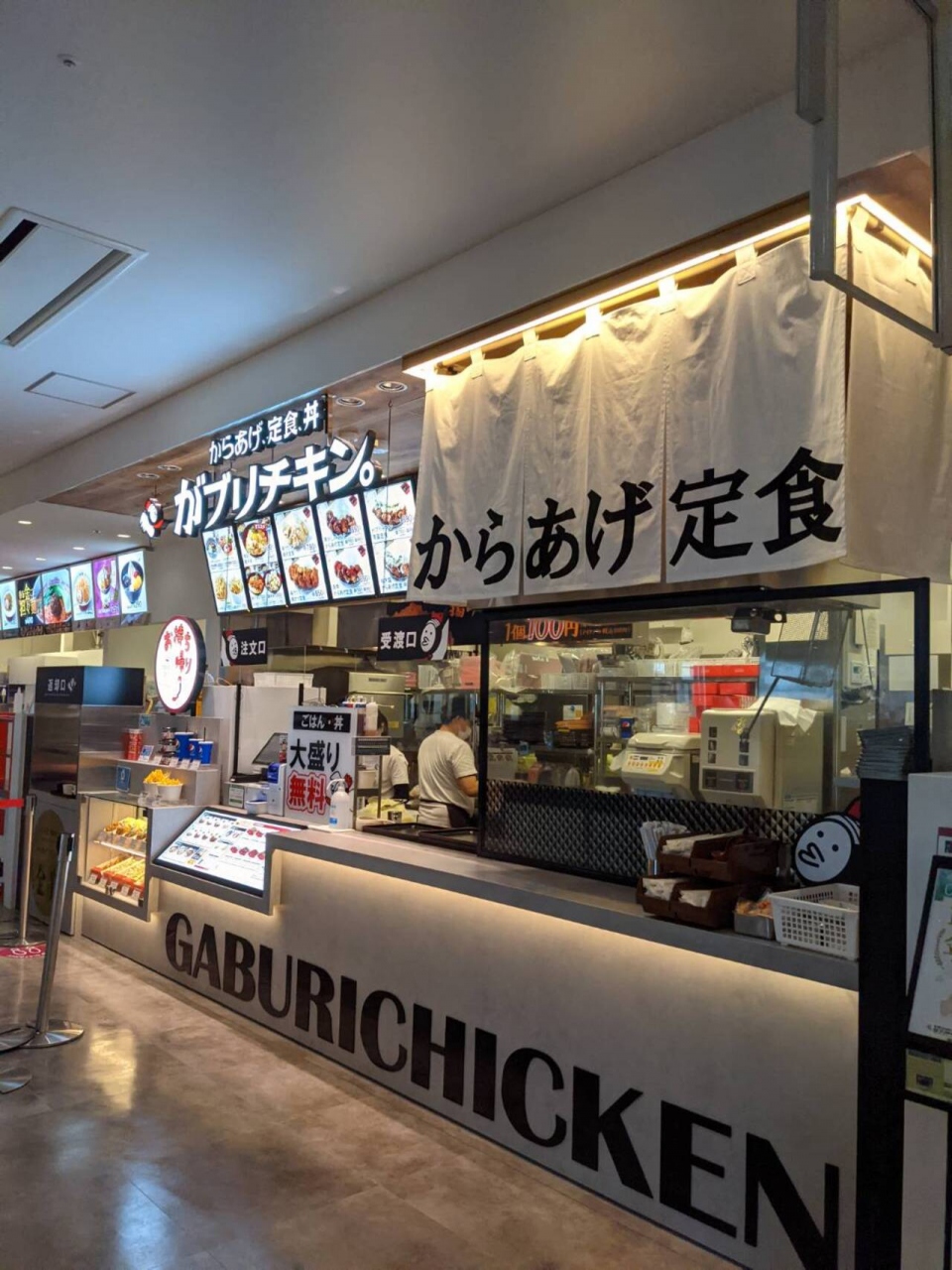 イオンモール ノリタケガーデンのフードコートにある「がブリチキン」です。揚げたてのから揚げは、柔らかくてジューシーでアツアツでした。焦がしニンニクやねぎ塩など、好みの味を選ぶことができ、ごはんのおかずとしても美味しかったです。