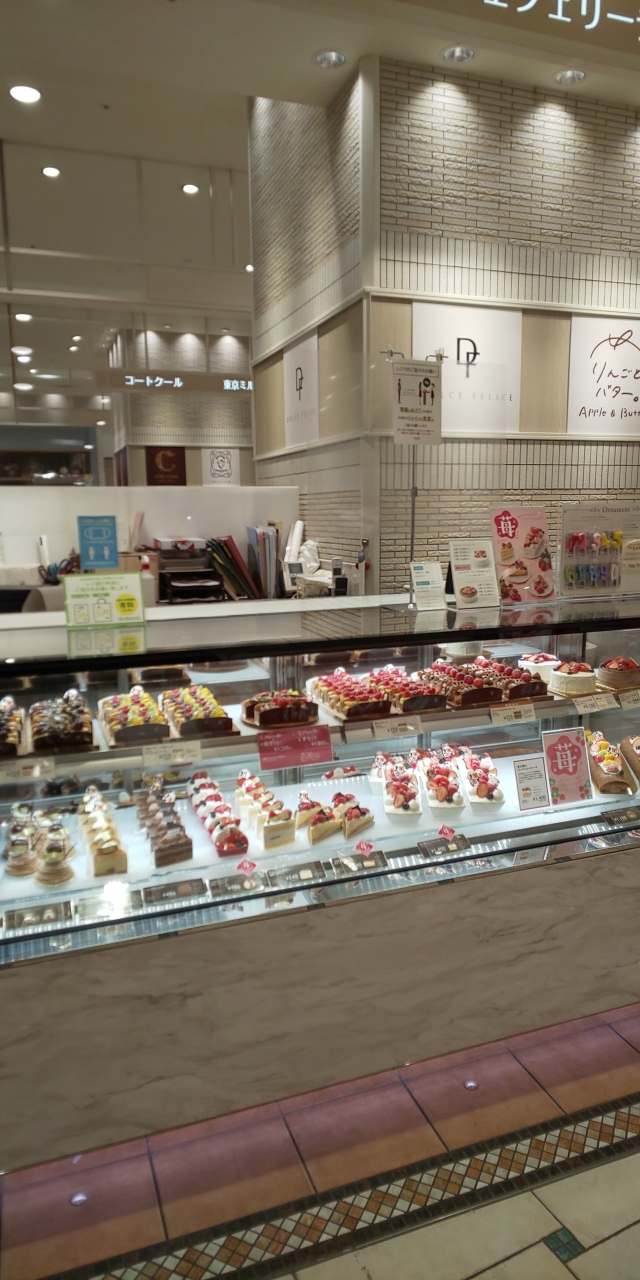 立川ルミネの一階にあるお店です。洋菓子をたくさん置いています。時期的にもいちごを用いたケーキが大半となっていました。と思ったらいちごフェアのようなものをやっていました。