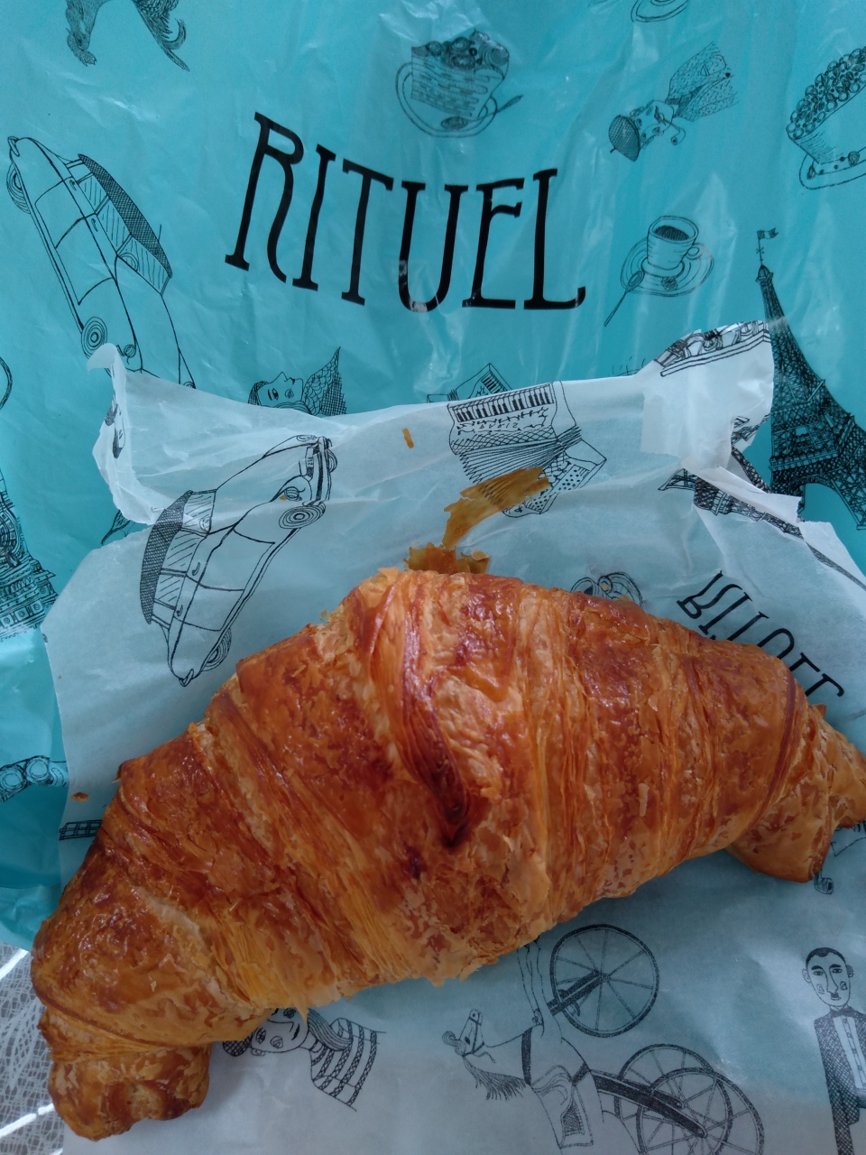 チョコレートのパンはとなりがチョコ風味になるという感じ。クロワッサンは一番はじで、チョコ風味とは無縁でしっかり風味が味わえた。