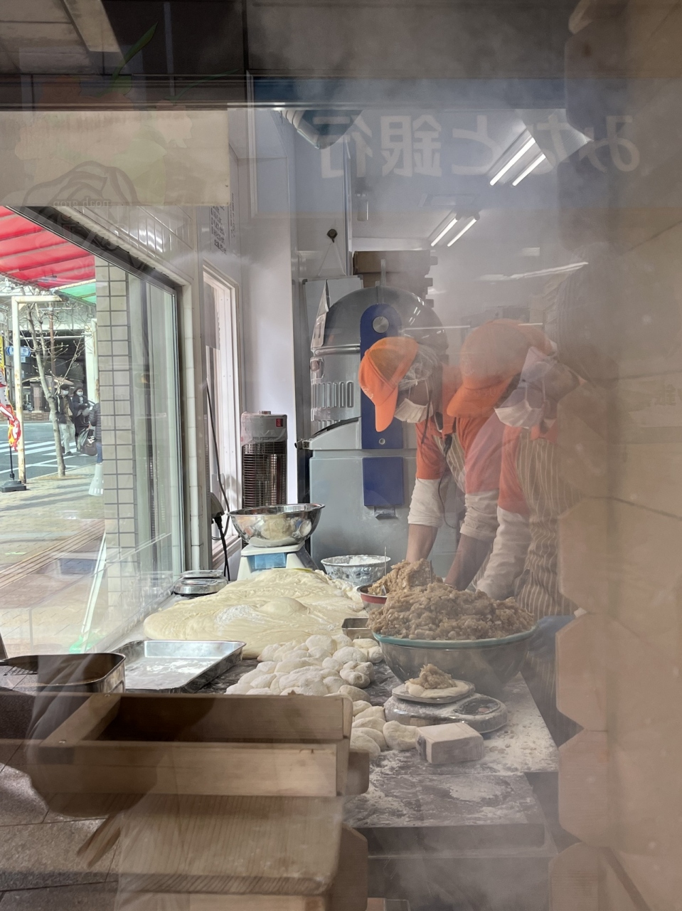 ベンチがあるので、その場でホカホカの「豚まん」をいただきました。
