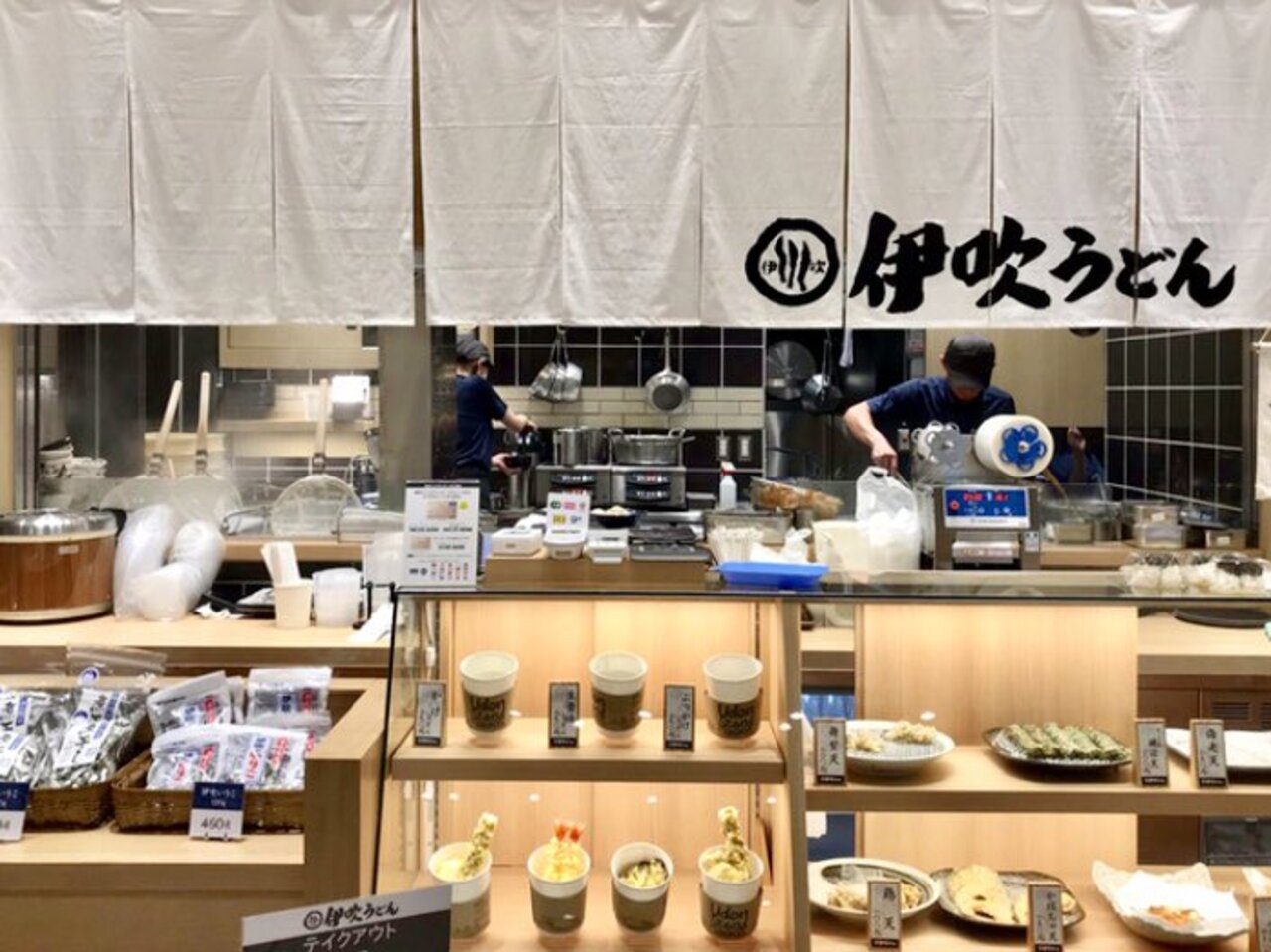 ミッドタウンのガレリア地下街にある「伊吹うどん」。親会社は丸亀製麺だそうです。