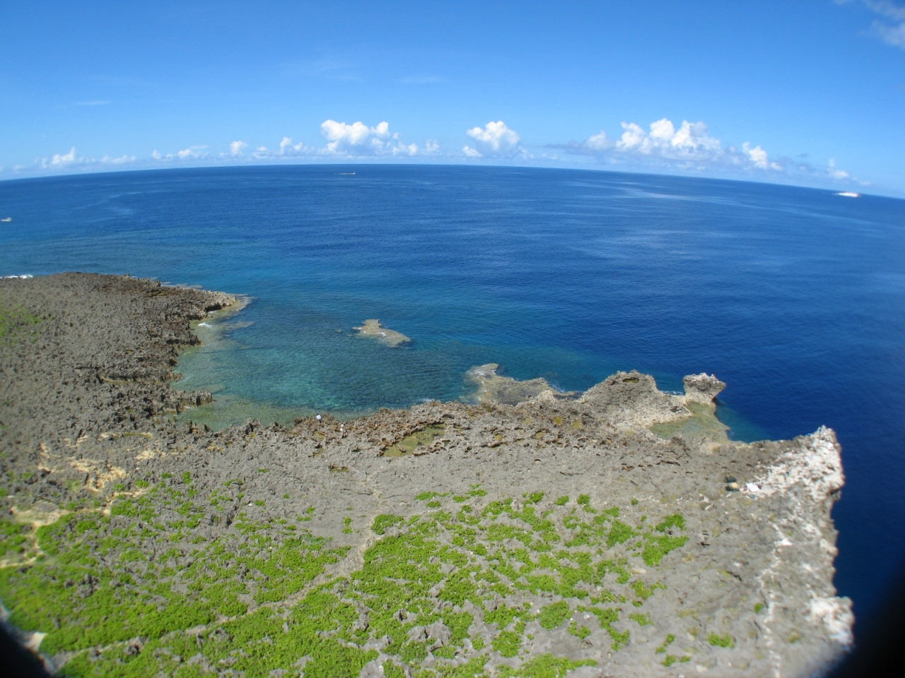 東シナ海に面した高さ約30mの断崖が続く岬のゴツゴツした岩が広がる公園の先端に灯台があります。入場料300円を払い灯台の中へ、細い階段を登るのは少ししんどかったが、天気が良かったこともあって地上31mから望む残波岬と東シナ海のパノラマ風景はとても素晴らしかったです。