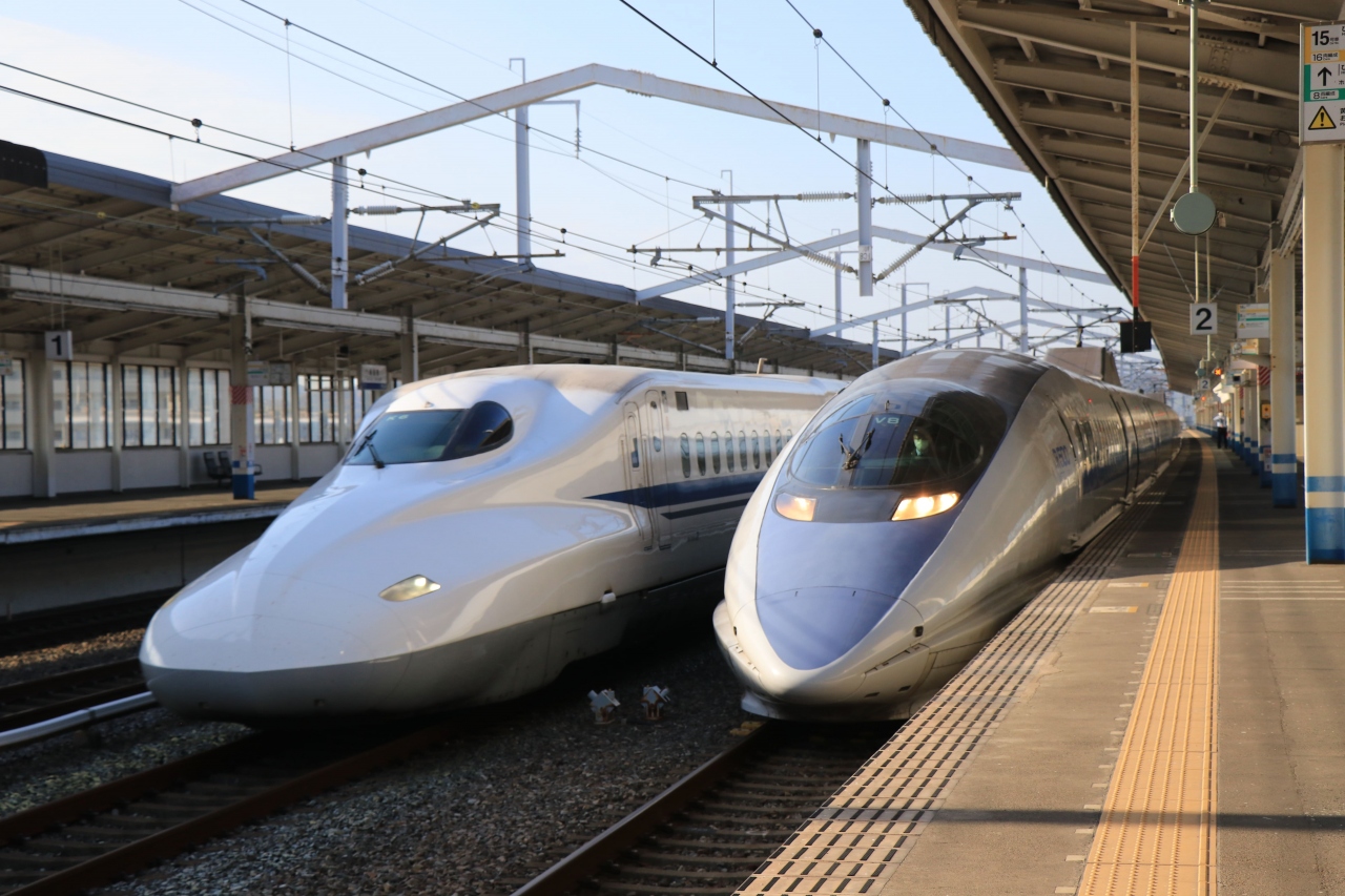 車種が統一されている東海道新幹線と比べると、こちらは同じN700系でも九州直通タイプがあったりひかりレールスターやかつての主役だった500系も現役で走っており乗っていて楽しい路線かもしれません。各駅タイプの「こだま」は(日中は)時間あたり1本と少ないなと思ってしまう所もありますが、どの車両が来るのかな?というワクワク感を味わうことも。