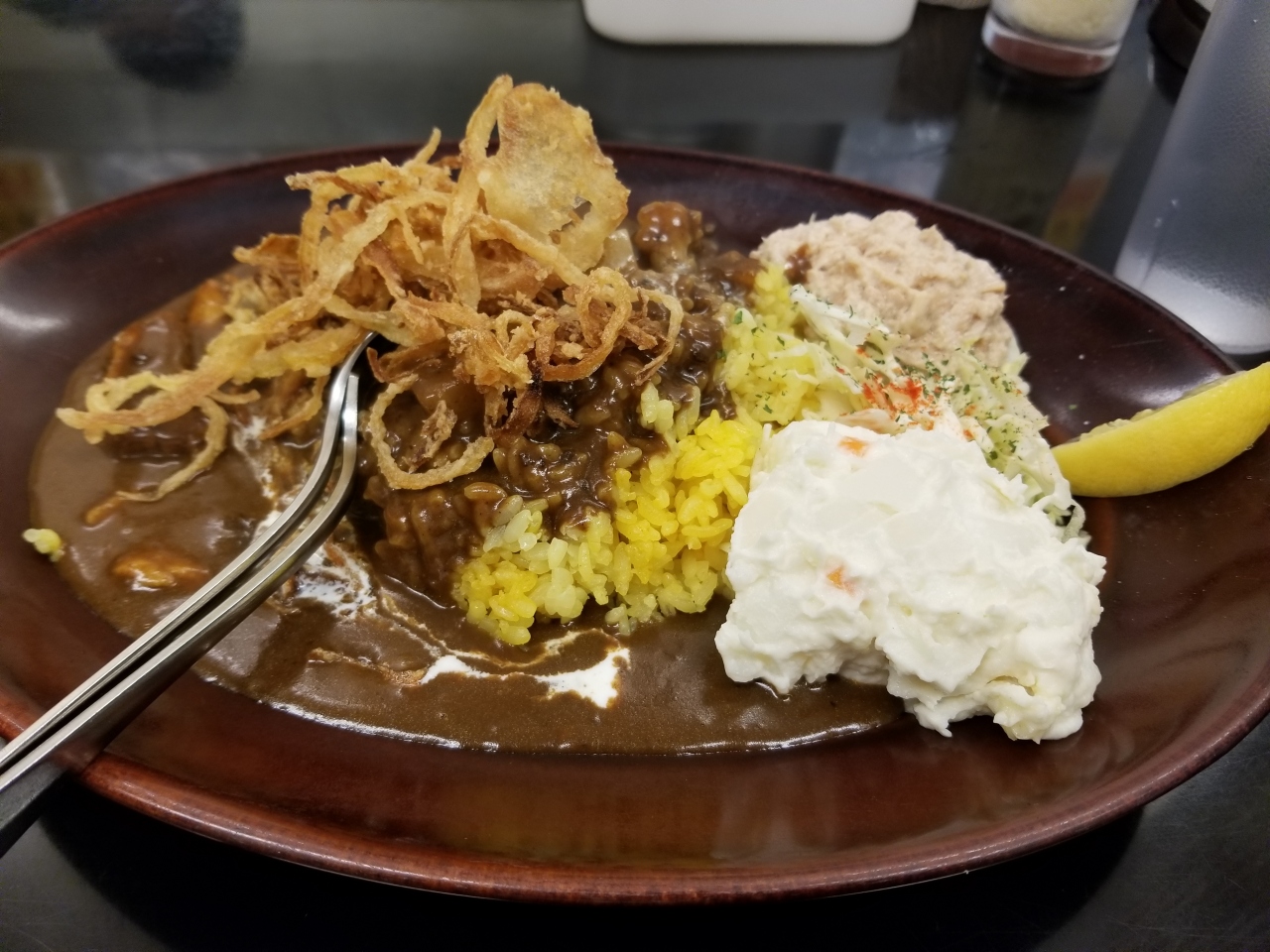 トッピングはツナ、フライドオニオン、ポテトサラダです。