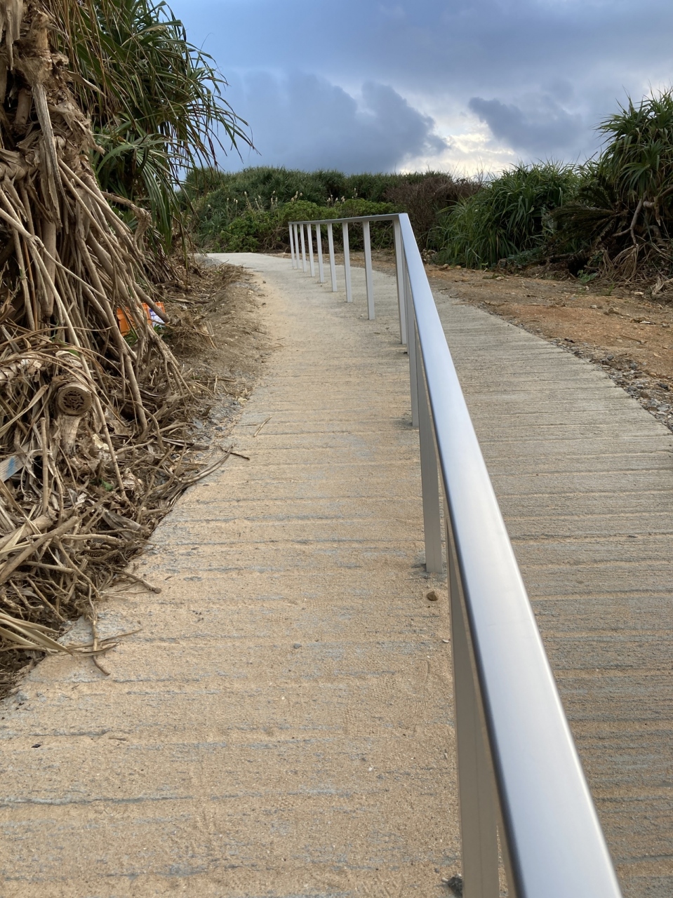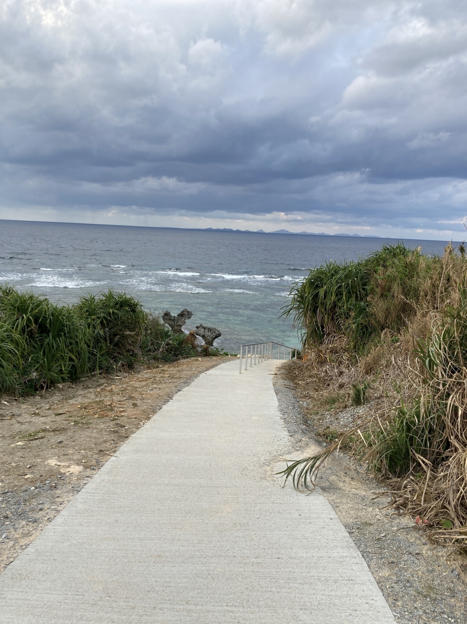 で、こんなオフシーズンでさえかなりの観光客が訪れていました。道は途中から舗装されて観光客が歩きやすいように改善されています。以前の道も残っていましたが、こんな道危険で無理、と言った感じ。さらに砂浜へは階段も設置されています。
