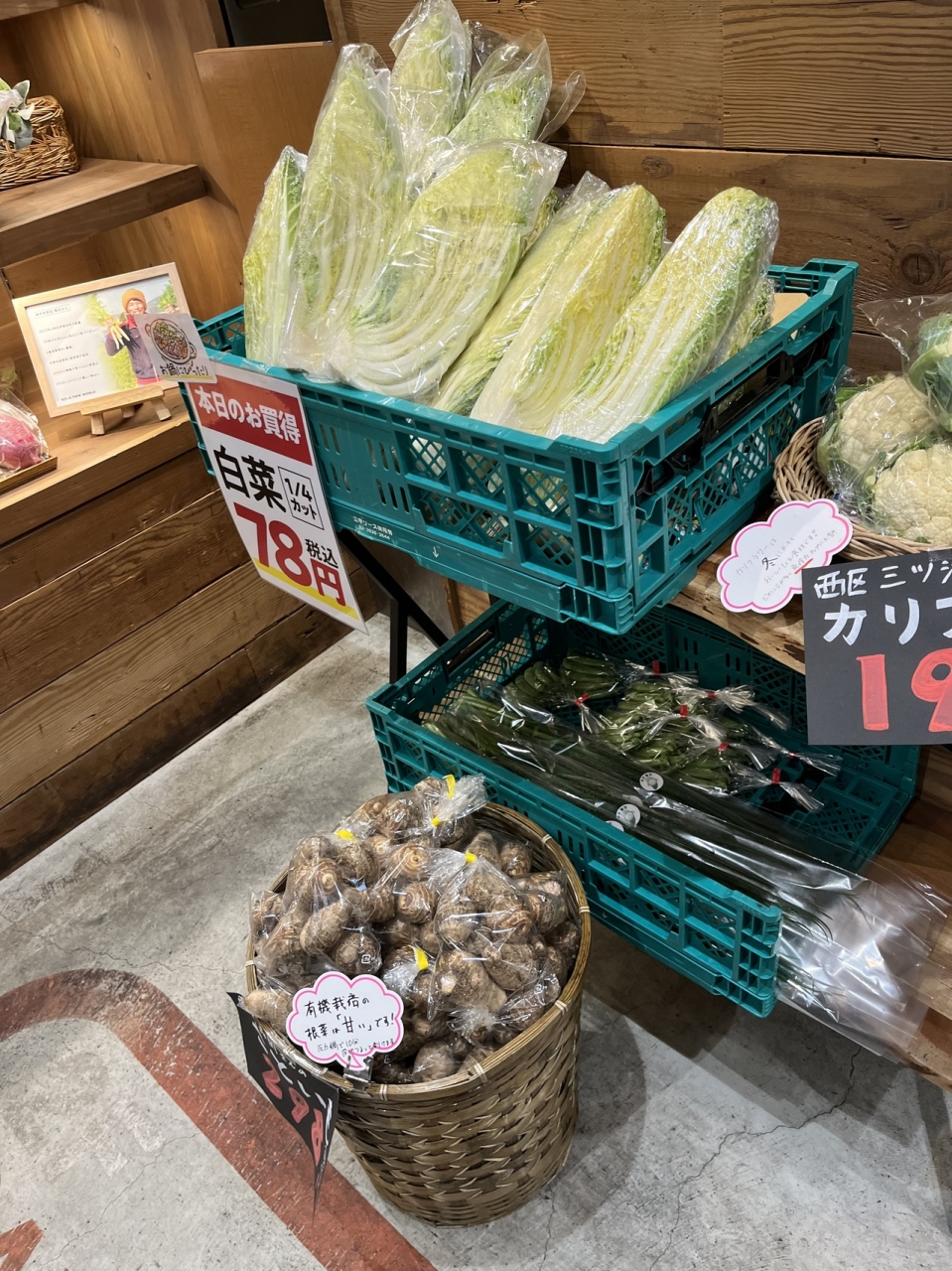 店内には 白菜 やカリフラワーなどもあって ここは八百屋さん??