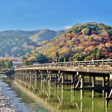 嵐山のシンボルとなる桂川に架かる橋です。現在の橋は1934年に完成しました。紅葉を見に嵐山を訪れました。桂川に架かる渡月橋と、紅葉した嵐山が青空に映えてとても美しかったです。日中は多くの観光客で賑わっていますが、朝早くは静かに鑑賞することができておすすめです。