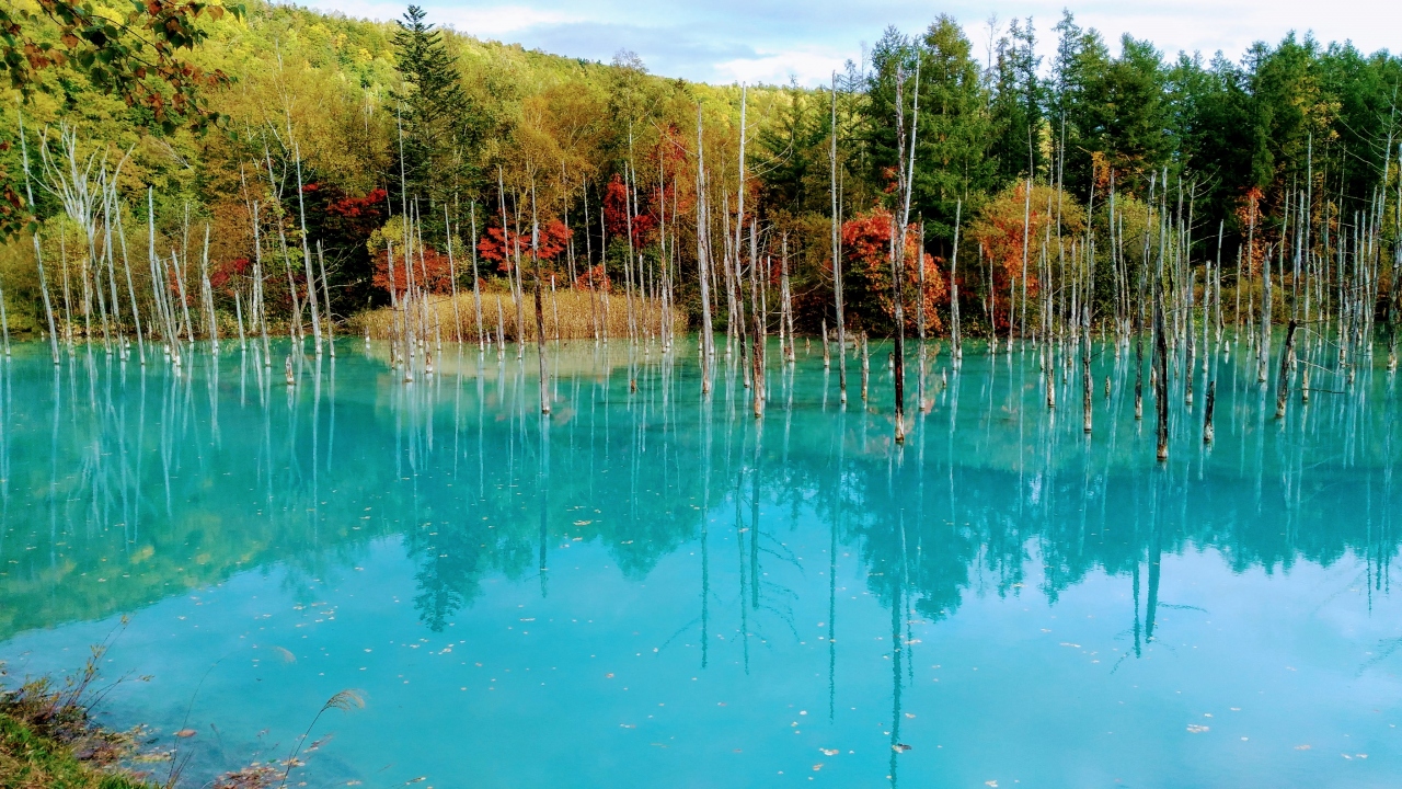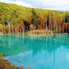 色とりどりの木々と青い水の色がとても綺麗で良かった。