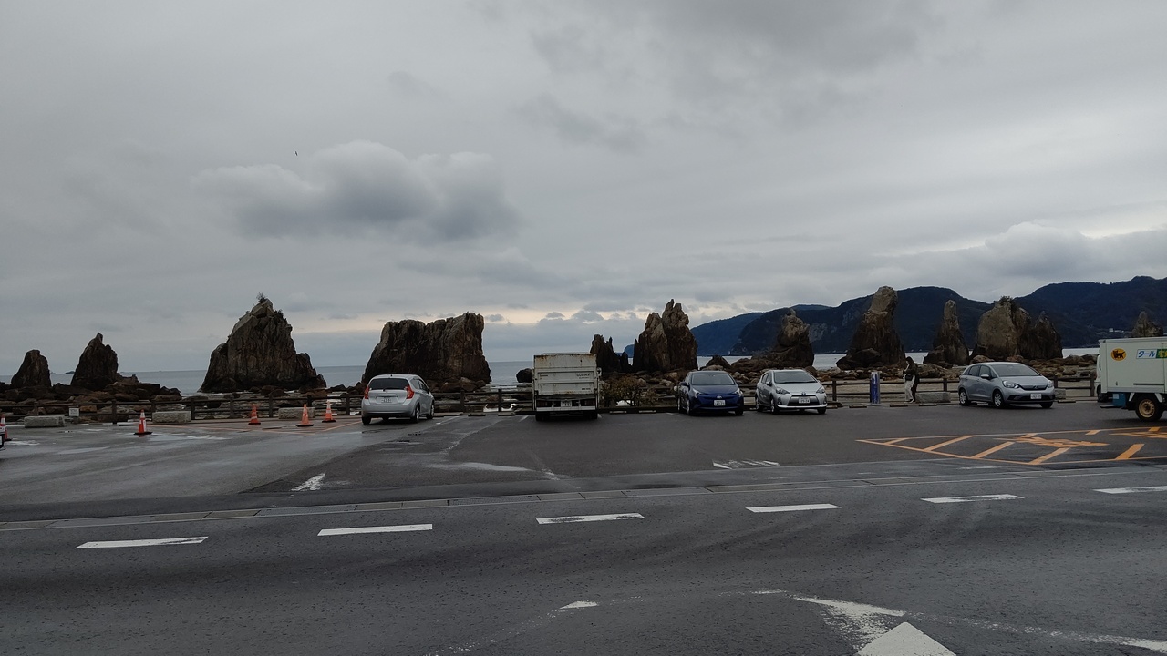橋の杭のように見えるので橋杭岩というようです。陸地から海に浮かぶ小さな島まで岩の柱が連なっており圧巻です。曇っていた日だったので写真写りが悪いです。晴れているともっときれいに写真が取れただろうなと思いました。