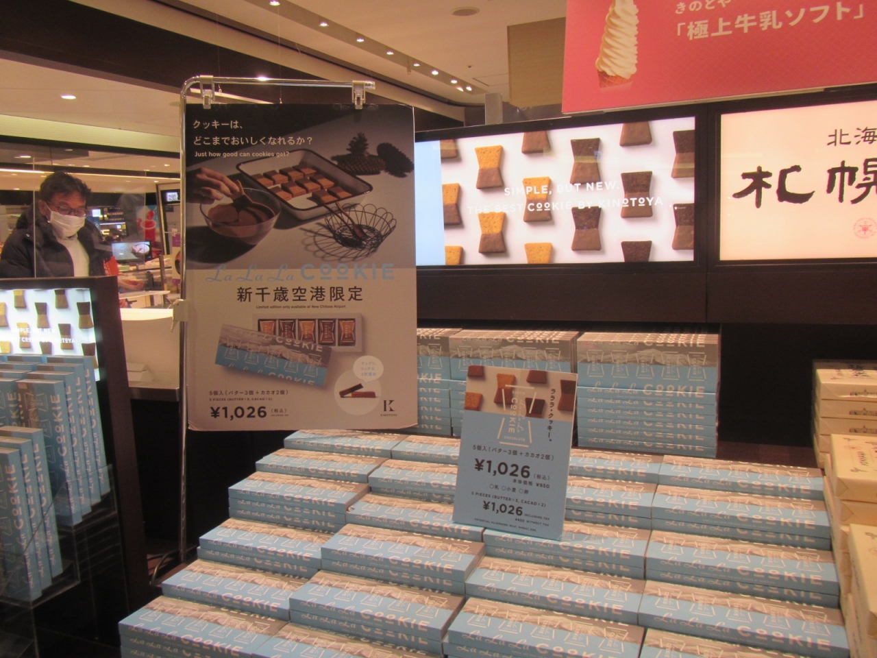 そのほか、こちらでは新千歳空港限定というブルーベリー味のチーズタルトやチョコレート焼き菓子(ラララクッキー)を売っていました。