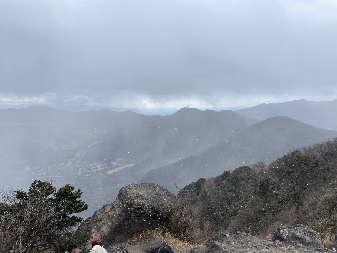 頂上へ向かう途中に急な崖や縄がありました。所々ぬかるみもあったり。途中、雪も降ってきました!予想外でした(・・;) さらに寒くなりましたがなんとか頂上に辿り着きました^ ^ 雪のせいもあり、景色は…真っ白でよくわかりませんでしたが、登れて良かったです♪ 今度はひとりで登りに行きたいと思います。