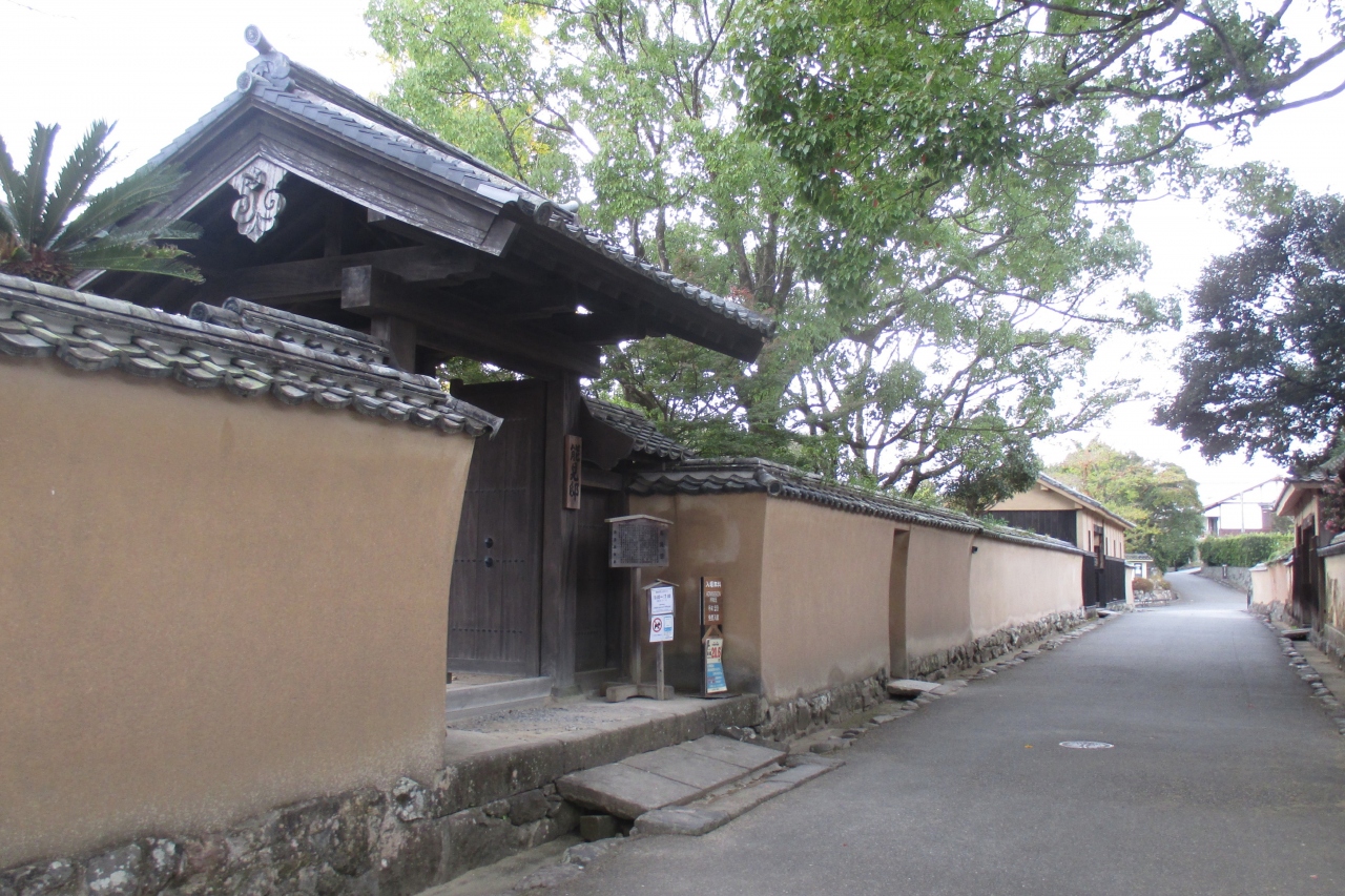 能見邸は大原邸の隣にありました。能見家は藩主直系の家柄ですから、それに相応しい家屋やお庭を持つ典型的な上級武家のお屋敷でした。敷地は436坪(1440㎡)で、建坪は76坪(250㎡)です。通りに面した塀は上にいくほど反り返っていて、見応えがありました。藩校の門のところも短いですが同じ様式でした。藩主系統の塀の様式なのでしょうか?建物は幕末期の築造で、その後、手が加わっていたそうですが、平成時代に大規模改修を行い、建築当初の姿に復旧したのだそうです。