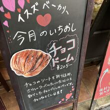 お店の 今月のいちおし商品 は「チョコドーム」205円です。