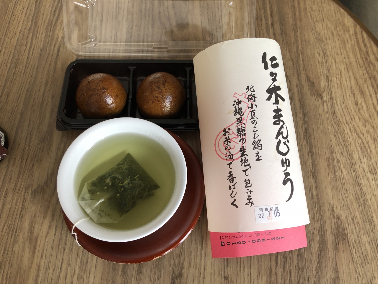 石山寺の門前にあるお土産屋店が並ぶ店舗の一つに仁々木はあります。名物のかりんとう饅頭をお土産で購入してホテルで食べました。北海道のこしあんを沖縄の黒糖生地でくるんだ饅頭を米油で揚げたものです。揚げたての食感はなくなっていましたがこしあんの美味しさは冷めていませんでした。