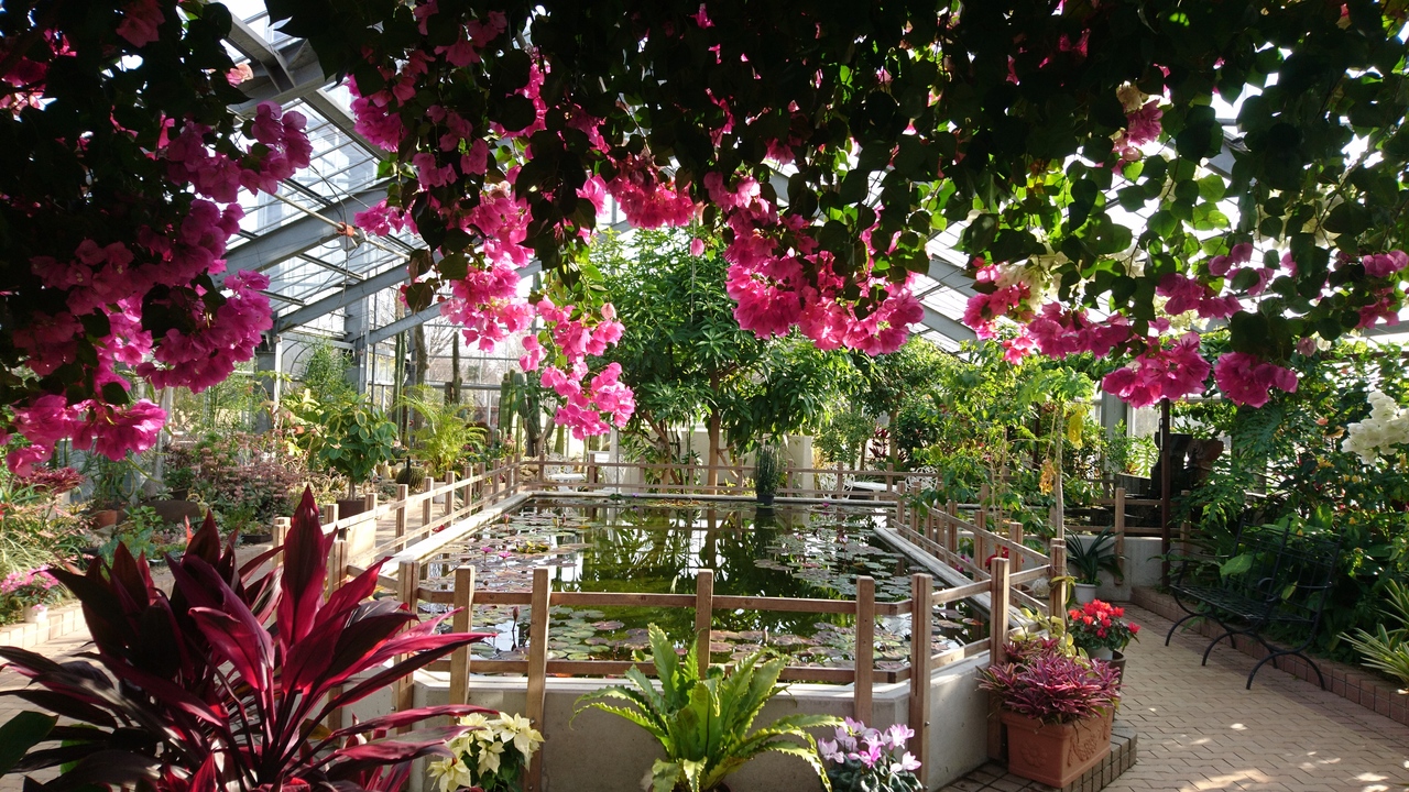 西山公園はたくさんの木々や花々が植わっていますが、今回は冬季ですので花々も少なめ。しかし、温室には花々がきれいに咲いています。