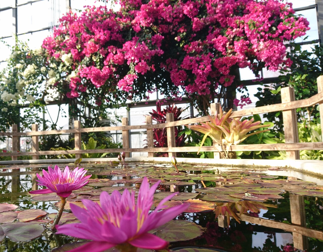 ブーケンビレア、ハイビスカス、スイレンなど咲いていて癒されました。