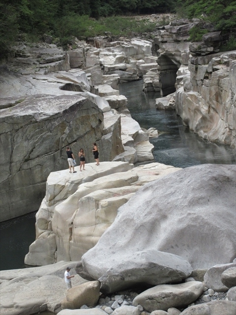 木曽川の景勝地の一つです.剥き出しになった花崗岩の間を川が流れ,白と青のコントラストがとても綺麗な対比を成しています.中心には浦島堂というお堂が作られ,周囲には寝覚の床美術公園という公園があって,ライトアップの設備もありました.ただ,川原まで下りるには結構な急坂を上り下りしなければならないので,それなりの体力が必要です.一番近いのは臨川寺から真っ直ぐ下りるルートですが,入場料200円がかかります.少し遠回りになりますが,勿論無料でも行くことが出来ます.