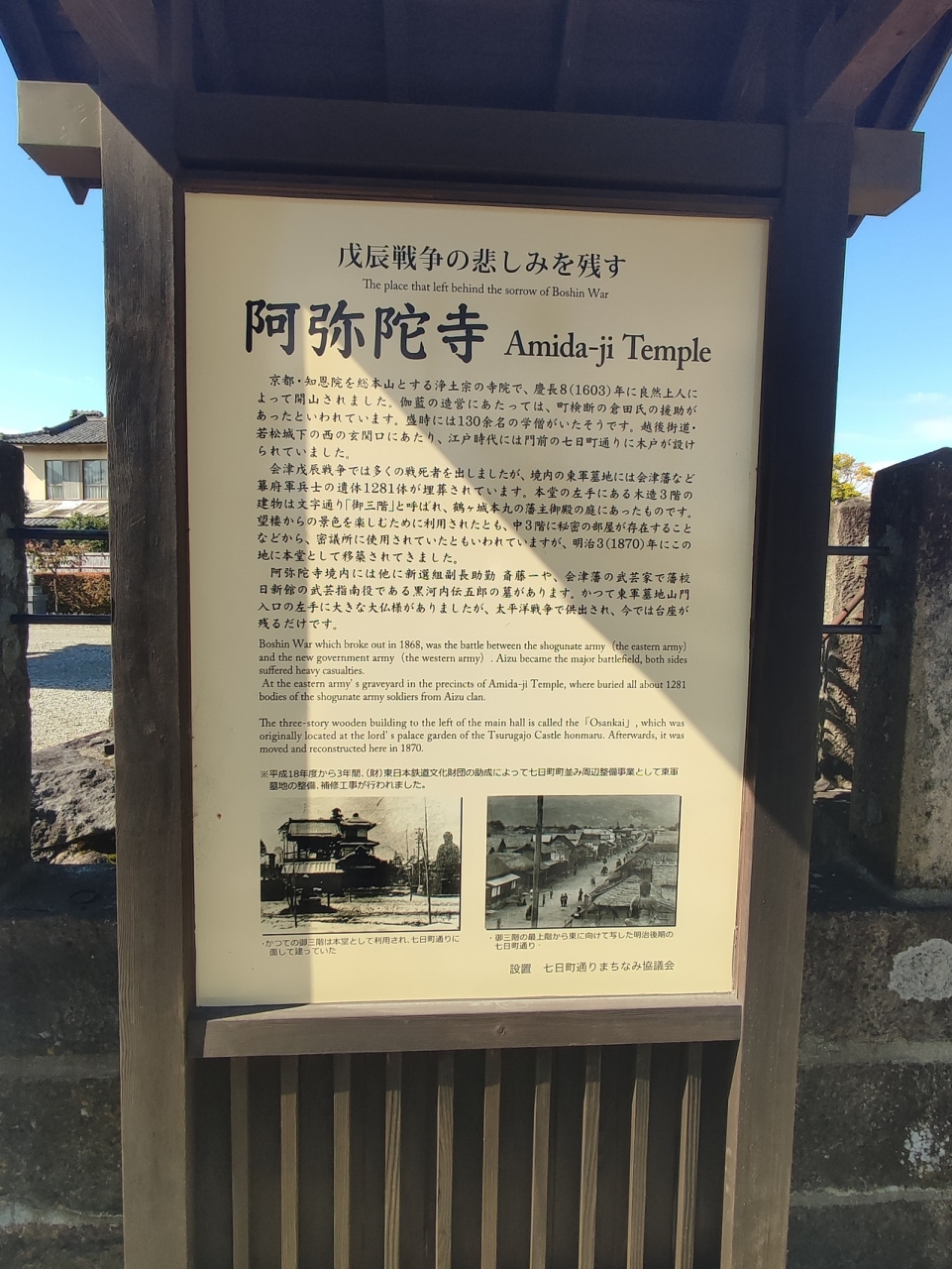 浄土宗のお寺で、七日町駅の近くにあります。鶴ヶ城などからはやや距離があります。戊辰戦争、西南の役の戦死者が埋葬されているお寺で、その関連で斉藤一の墓も本人の遺志により会津の地であるこちらにあります。鶴ヶ城本丸にあった御三階もあり、見どころ多いです。