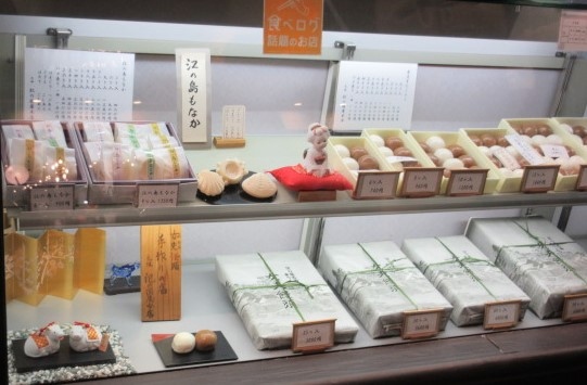 江の島の商店街にあるお店ですのでわかりやすいです。女夫饅頭が有名なお店だそうですので、こちらを購入しました。白色はこしあん、茶色はつぶあんんのお饅頭でした。素朴でおいしいお饅頭でした。お団子など、他の甘味も売っています。