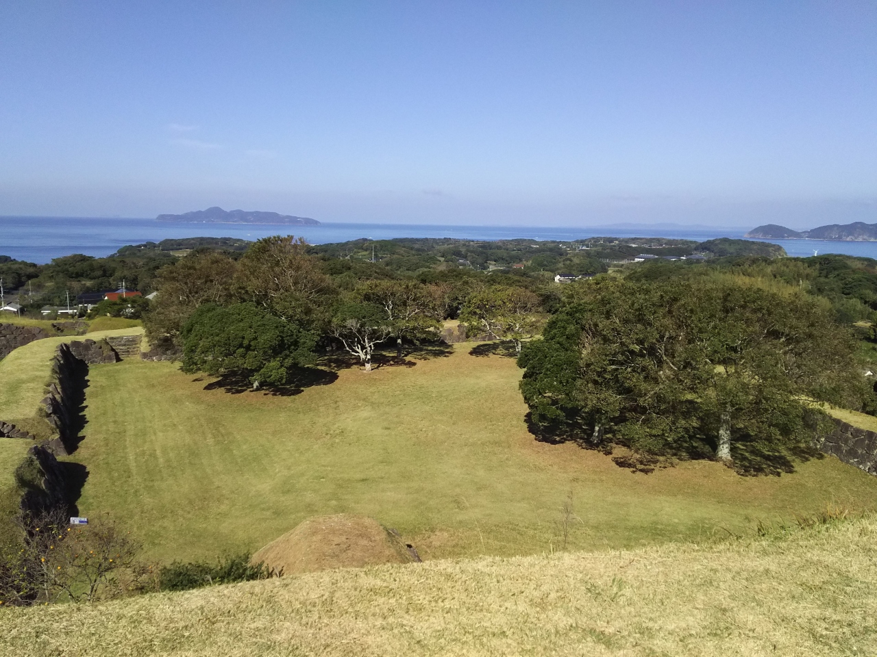 唐津から国道204号線を40分ほど北に走って名護屋城址に到着しました。名護屋城は豊臣秀吉が朝鮮出兵に際して、拠点として築いた城で、現在は国の特別史跡に指定され、日本の100名城にも選定されています。城址全体が公園になっています。入口に入って、まず右の高台に登って天守閣跡を目指しました。天守閣跡からは、玄界灘に遠く壱岐の島が見えました。公園内をゆっくりと40分ほど散策しました。なお、隣接する博物館は、休館になっていました。