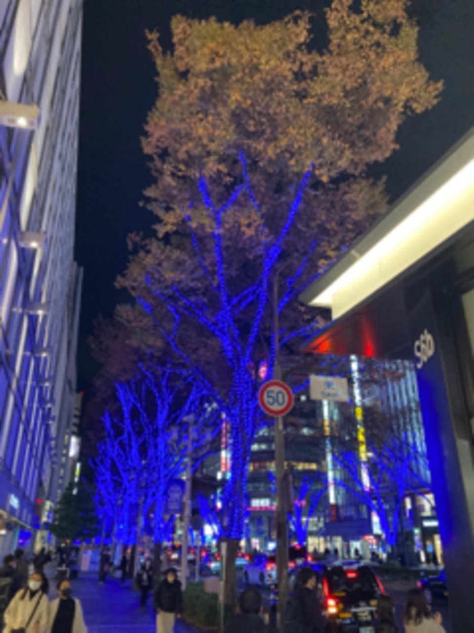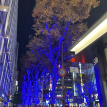 通り沿いの木々に青色のled電球が装飾され、幻想的な雰囲気になります。