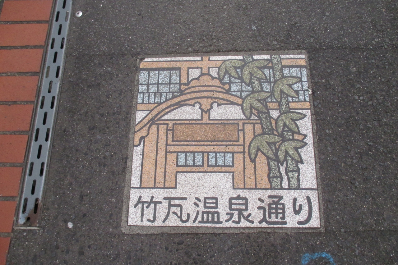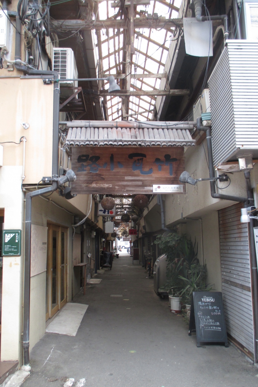 竹瓦温泉通りのプレートの填まった道を進んでいると、竹瓦温泉のちょっと手前に、オッ!と思わせる細くて古びた木造アーケードがありました。右から「竹瓦小路」と書かれた趣のある看板が下がっていました。日本初で、もちろん、現存する日本最古のアーケードだそうです。木造ですが、地震にも耐えてきたのですね。頑張れと声を掛けてあげたくなります。