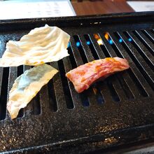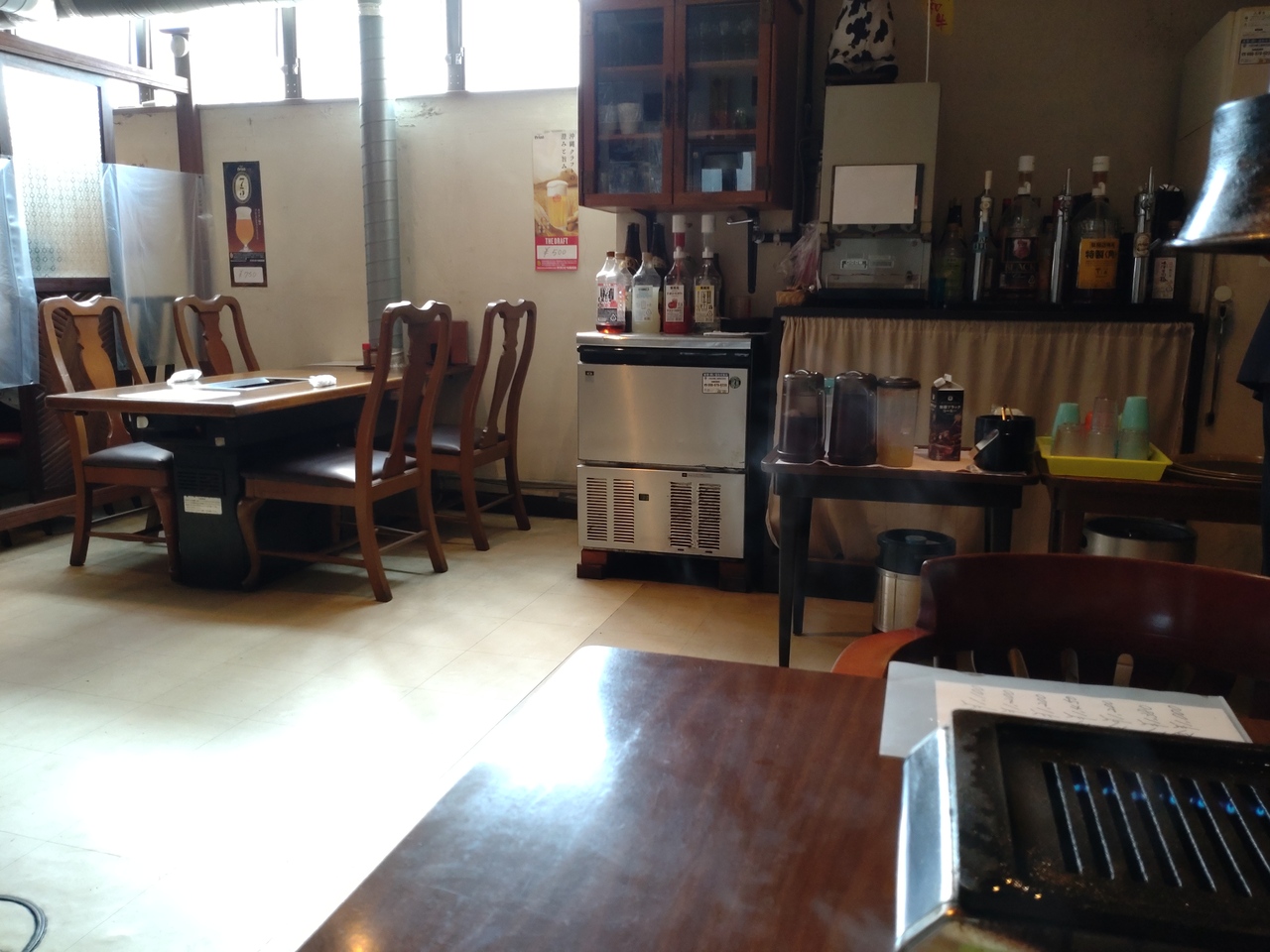 こちらのお店はテーブル席にそれぞれガスロースターかあるタイプで、最近多い七輪と排気口タイプではないところがいい。ドリンクは飲み放題で、マンゴー、シークワーサー(甘くない)、さんぴん茶などが用意されていてセルフ。